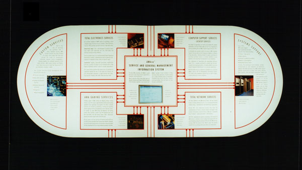 The brochure used a “networked” theme throughout that was calculated to present a unified prospect to service and maintenance contract customers. The promise was that a contracted organisation would instantly have AWA’s widely disparate basket of computer services at their fingertips – all co-ordinated seamlessly by the AWARE system.